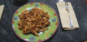 sauce then mixed with elbow macaroni.