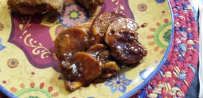 Peel and slice sweet potatoes. In a medium size bowl add the brown, white sugar, cinnamon