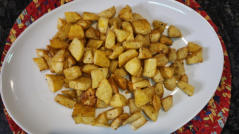 Preheat the oven to 350 degrees F. (This will be for the Chicken & Sausage as well as the Roasted Potatoes.If you are going to serve over Roasted Potatoes:In a large bowl, add the prepared potatoes, drizzled olive oil and salt & pepper to taste and mix to coat well. Spred the potatoes in a single layer on the prepared baking sheet (I always cover the baking sheet with aluminum foil and spray it with Pam). Place the baking sheet in a preheated 350 degree F oven and bake till golden brown and tender.This will take between 35 and 45 minutes and may overlap some of the baking time with the Chicken. When The potatoes are done, remove from the oven and set aside till ready to serve.Chicken Scarpariello:Salt & Pepper both sides of the chicken thighs to taste. Over medium high heat, coat the bottom of a large frying pan with olive oil. Once the oil is slightly shimmering, place the chicken skin side down and allow it to drown. It will take 5 minutes or more, once each piece releases easily off the bottom of the pan, turn over and brown the other side. You are looking to just brown the chicken and not cook through at this point. When chicken is browned on both sides, remove to a plate and set aside.In the same pan add the sausage and repeat the browning process, again you are not looking to cook the sausage through, just browning it. When the sausage is browned, remove to a plate, cut into bite size pieces and set aside. Between the olive oil and the fat from the chicken skin/saudge, there should be enough fat to coat the bottom of the pan but if not add some additional olive oil. Add the peppers, shallots and the onions to the pan over medium heat and saute till the peppers soften slightly (About 5 minutes). Reduce heat source to medium then add the garlic and saute about 30 seconds, add the cherry peppers and vinegar. Sprinkle about 2 tablespoons all-purpose-flour over the peppers and onions and saute, stirring constantly for about 1 minute. Add chicken stock/broth, increase the heat source to medium high, and stir till the sauce begins to thicken, add the Italian Seasoning and the wine, continuing to stir until it reaches your desired thickness. Add the sliced sausage to the pan and stir to coat. Add the chicken skin side up on top (Don’t submerge into the sauce) and bake in the preheated oven for 30 minutes.