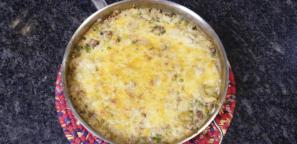 1 pound ground beef 2½ to 3 pounds russet potoatoes (Peeled and cut) 1 large white onion (1 cup) 1½ to 2 cups frozen sweet peas 2 cups of your favorites cheese (Shredded) ½ teaspoon Accent (optional) seasoning sprinkled over the ground beef 1-2 tablespoons cooking oil (To saute the potatoes) 2 teaspoons Kosher salt 1 teaspoon pepper 1 tablespoon granulated garlic 3 tablespoons Worcestershire Sauce 1 to 2 cups whole milk, beef stock or water (The amount will depend on how thick you want the sauce 1 teaspoon cornstarch (Dissolved in the milk/stock or water)
