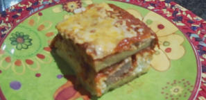 My version of Polenta Lasagna, is a hearty dish made with a thick delicious tomato gravy, ground beef Italian sausage, creamy Ricotta/Mozzarella, Romano Reggiano and Parmigiano Reggiano. All layered and Baked to perfection.