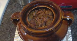 For a 4 QT Dutch Over or Beanpot2 packages (2 pounds) of any Small White Beans (Navy, Great Northern)3 Tablespoons Brown or White Sugar2 Onions (small to medium), peeled1½ teaspoon Dry Mustard1 teaspoon Baking Soda½ pound Salt Pork1 cup Molasses (I use Grandma's Molasses) it comes in original and robust (I use the robust)2 teaspoons Salt½ teaspoon Pepper
