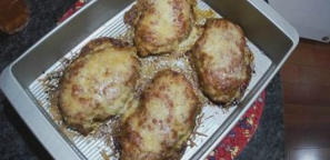 breadcrumbs, fried to a golden brown then topped with cheese and my homemade gravy.