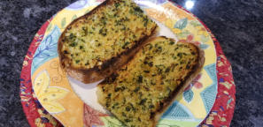 Pre-heated oven to 325 FCut bread in half lengthwiseCrush, or blend garlic and add to a bowl, add olive oil and stir well. Add parsley and parmigiano cheese and mix well.Lightly olive oil on each half or the bread.Evenly spread olive oil, mix over each half of the bread. Place bread in the oven and bake for ten minutes. Then broil for 2-3 minutes until the top is golden brown.